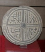 瓦当(がとう)とは、屋根の1番手前に来る瓦のことで、瓦の底にあたる部分(人が下から見上げる部分)には、文字や図像が彫刻されました。